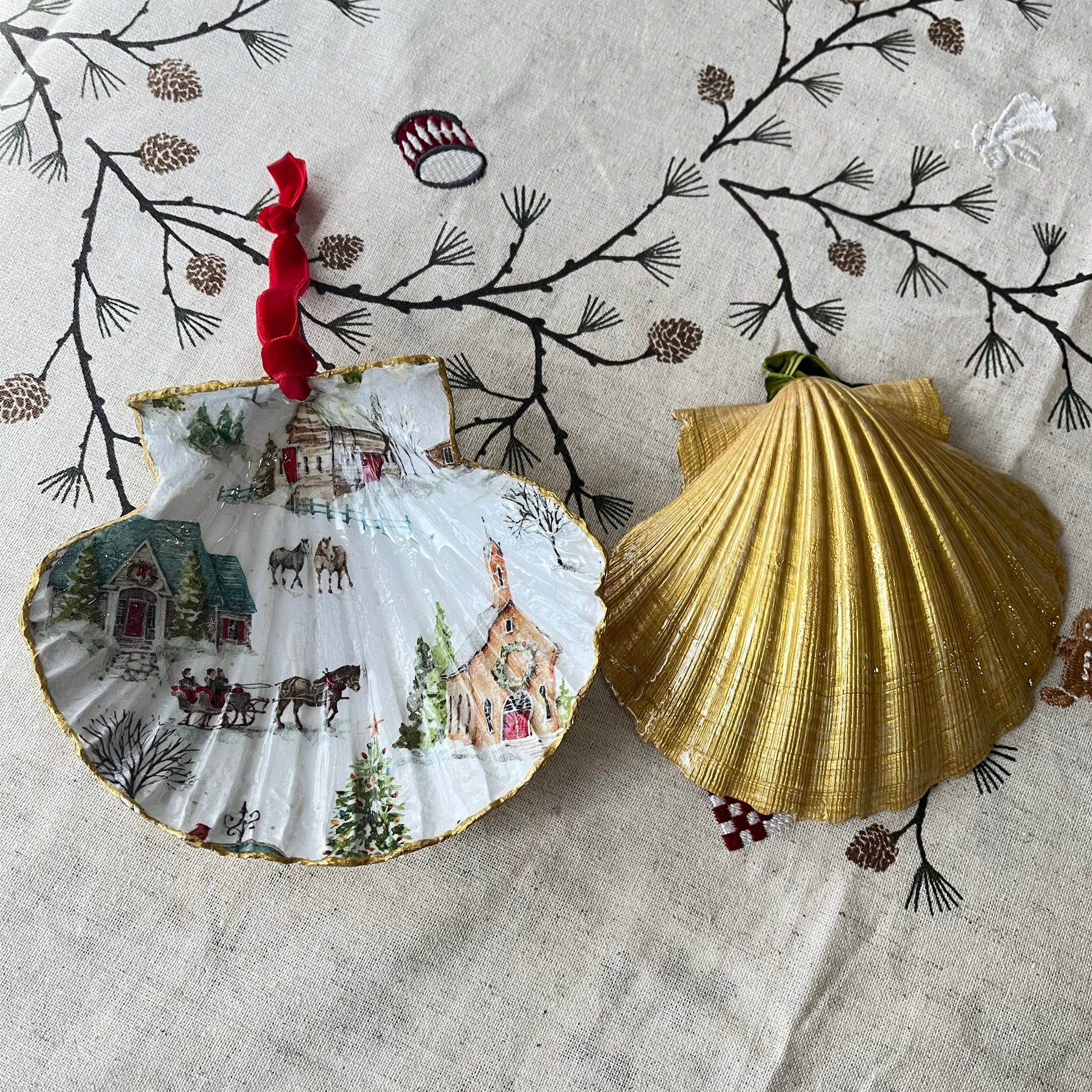Concha de vieira decorada con la técnica decoupage.