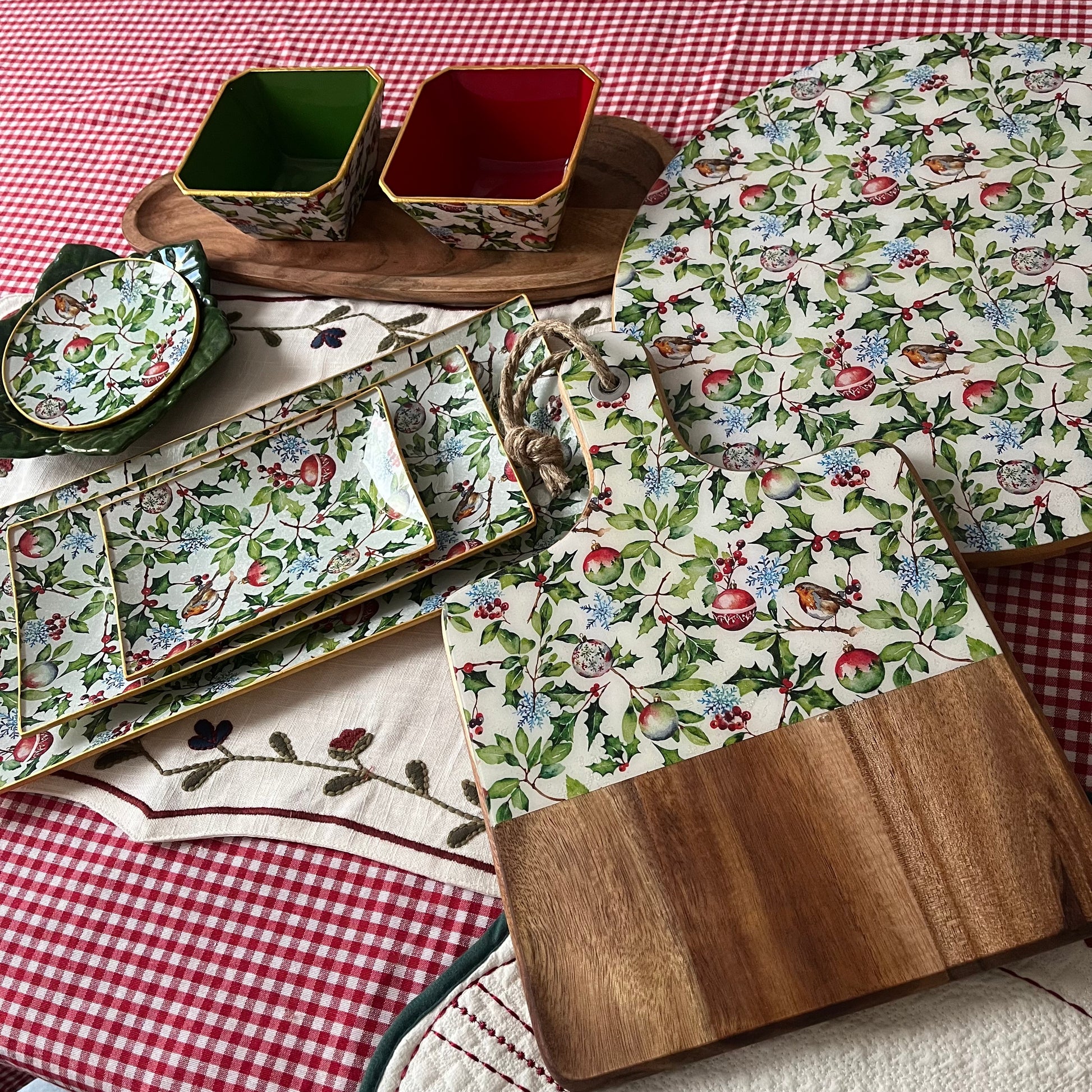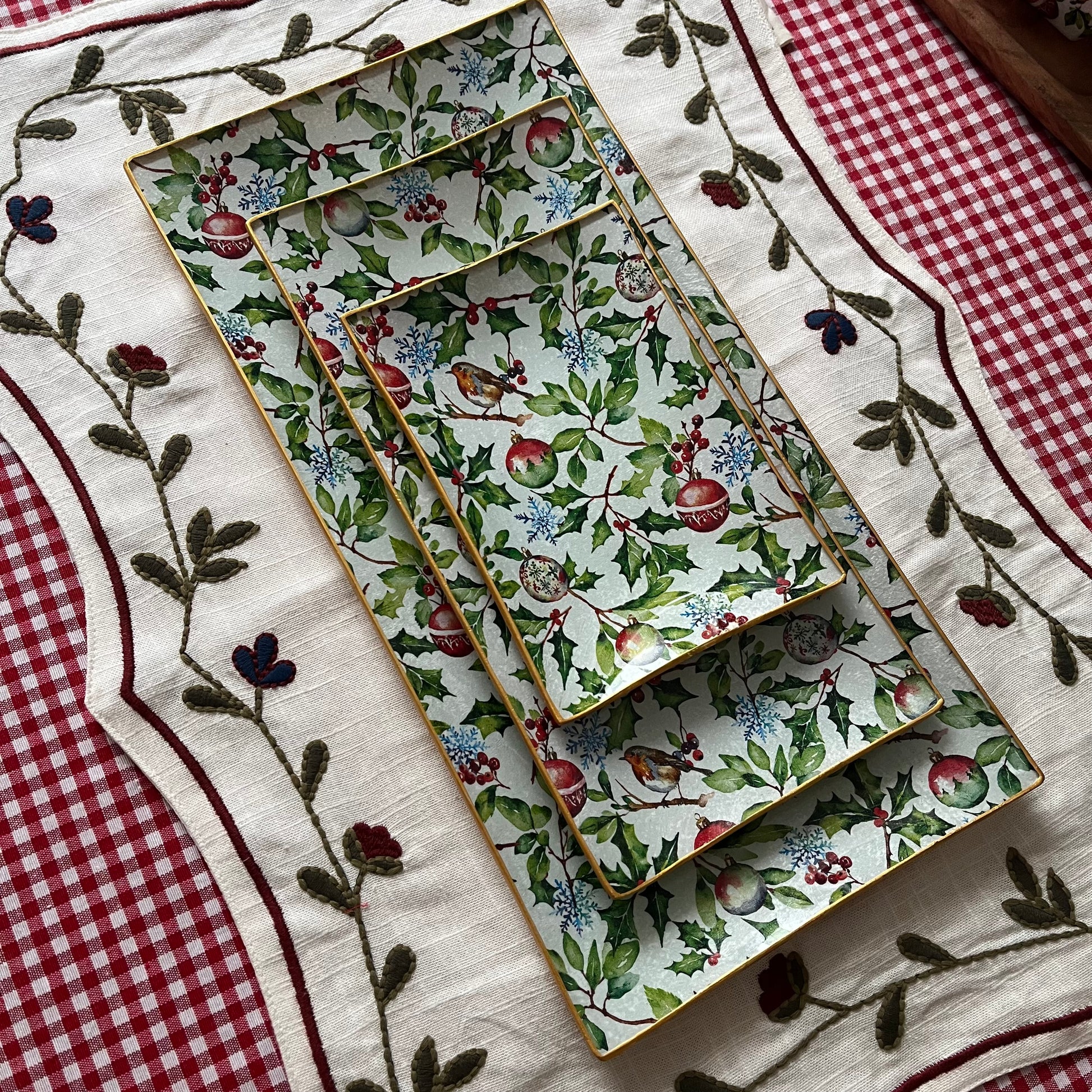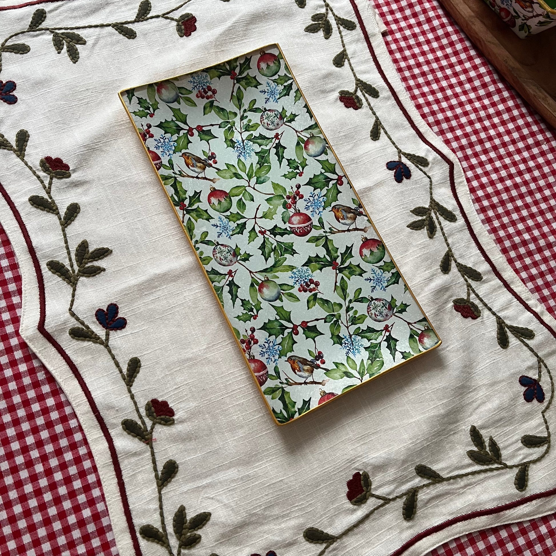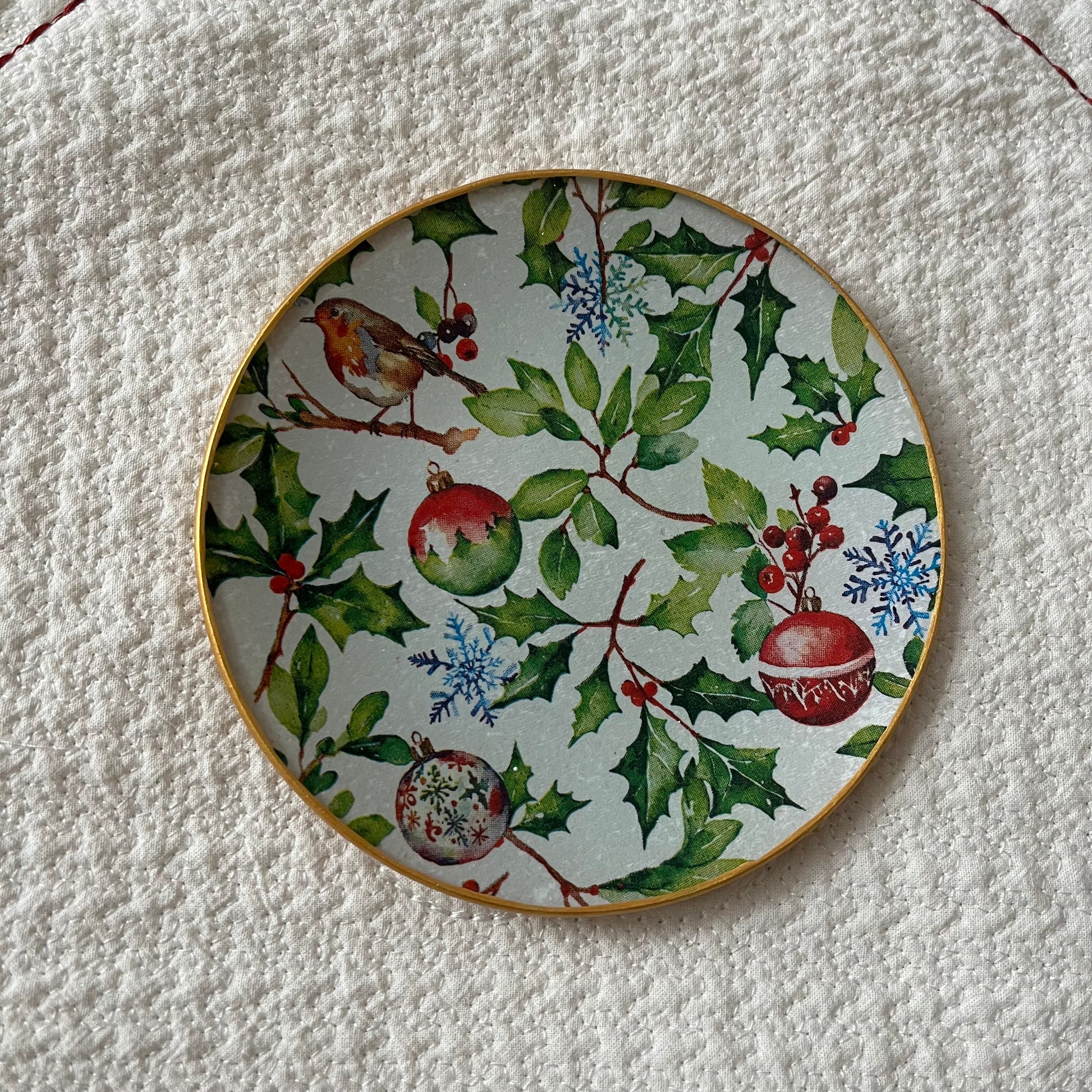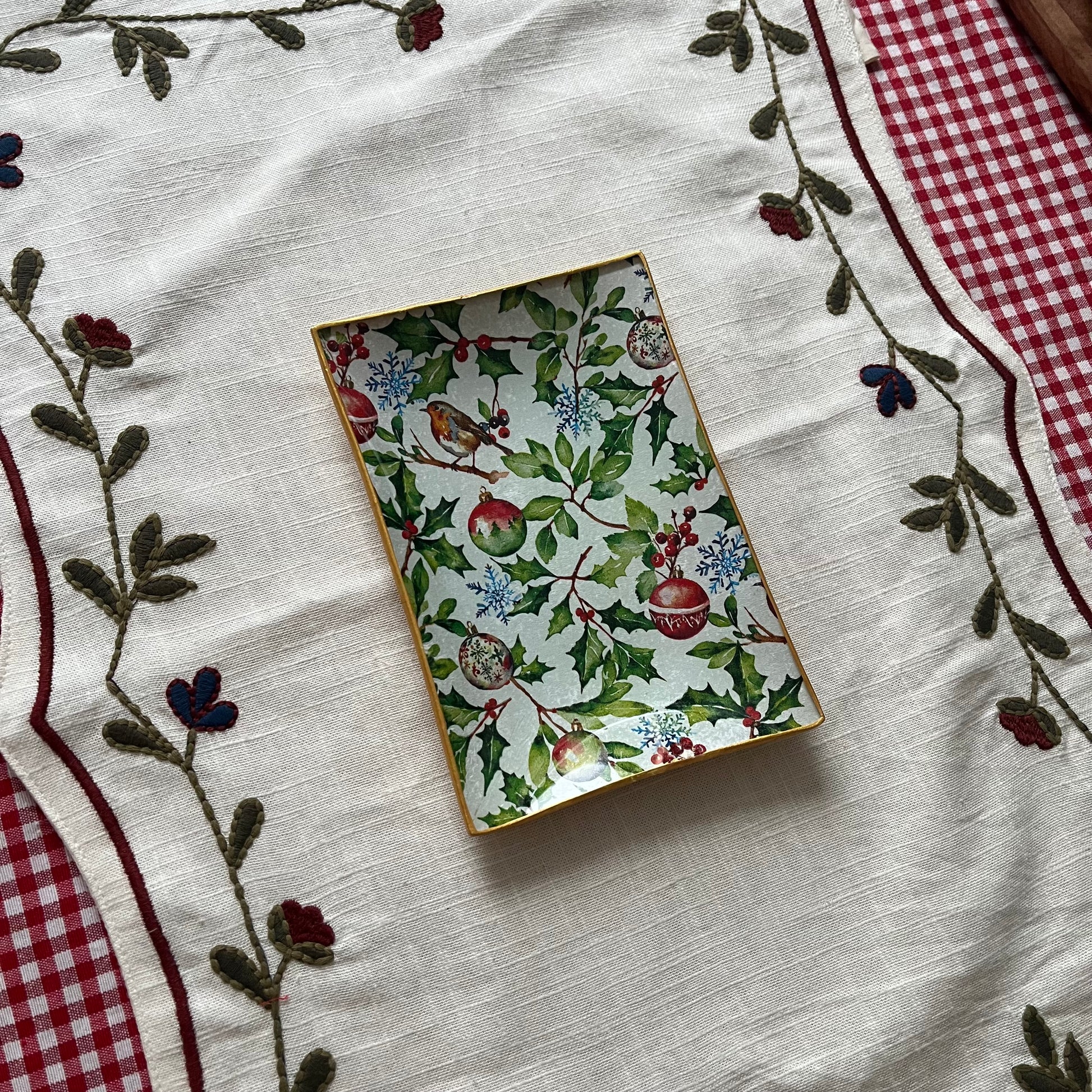 Plato/bandeja de cristal decorado con la técnica decoupage.