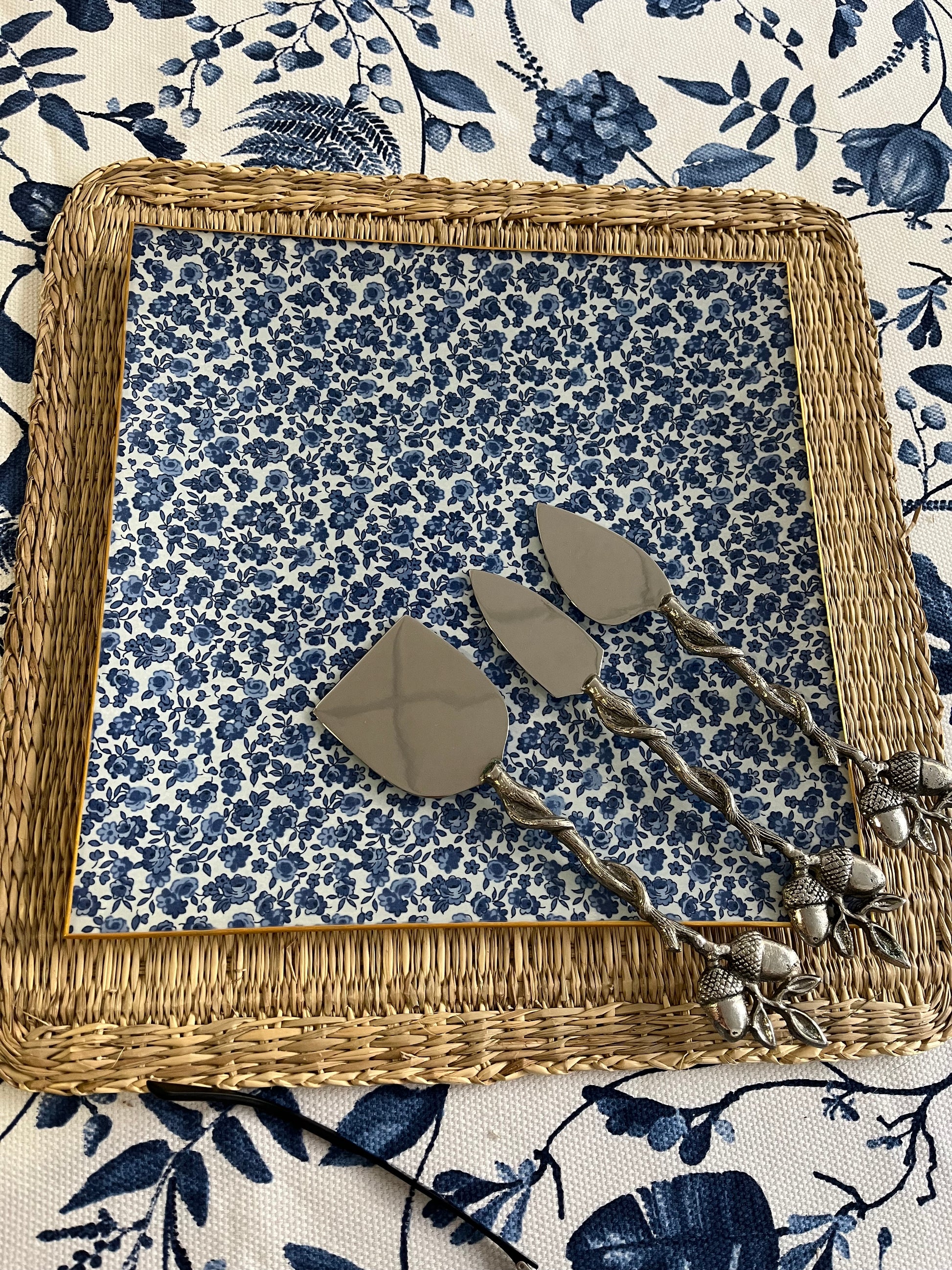 Plato/Bandeja de cristal decorado con la técnica decoupage